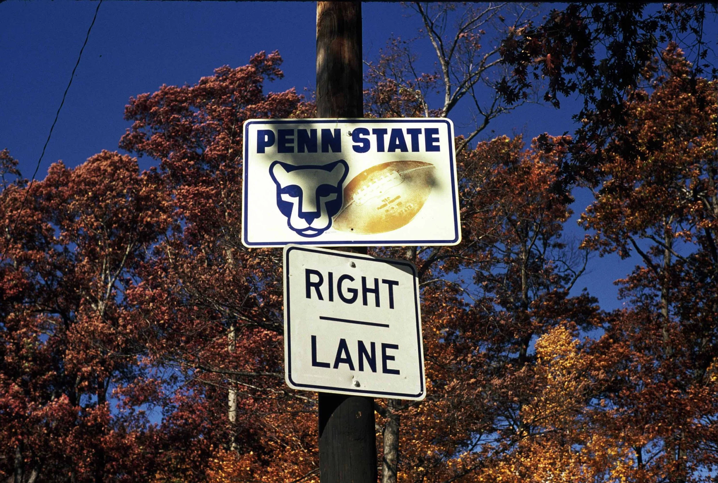 Prior to the 1942 debut of the Nittany Lion Shrine near Rec Hall, Penn State athletics and its teams didn’t really have any type of logo that represented them. Pennants, for example, commonly had the words “Penn State” sometimes with a lion’s head that frequently was the incorrect African lion with a mane. The Nittany Lion statue gave teams an accurate and very much-needed logo, of sorts, that relegated the Pennsylvania State College/University seal to educational and official school business. For the next 30+ years, the Lion Shrine served as Penn State’s athletic image—Note: The Lion Shrine has also appeared on special football jerseys created for the “Generations of Greatness” games beginning in 2017.